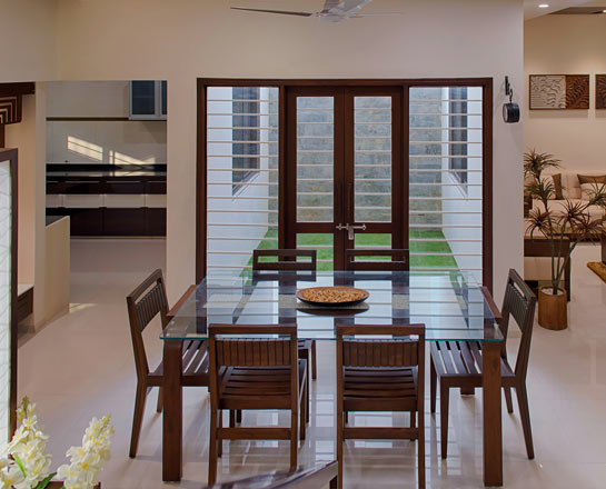 A fast-developing location and easy proximity to most parts of the city makes living truly convenient, yet away from the hustle & bustle of the city. The 4-BHK Duplex Bungalow offers excellent planning together with a unique courtyard that opens up in the living & dining areas, adding a wonderful natural feel to the interiors.